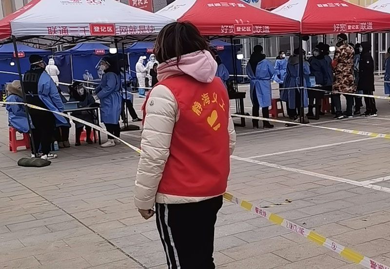 在各個(gè)核酸檢測工作點(diǎn),除了專業(yè)又敬業(yè)的醫(yī)務(wù)人員外,還有一些這樣可愛的人,她們做好現(xiàn)場秩序的維護(hù)工作,使得核酸檢測工作有序開展。
